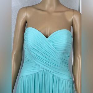 ALFRED SUNG Mint Green Strapless Pleated Chiffon Dress. Size 6