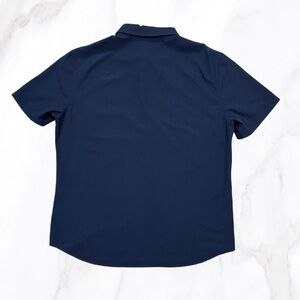 Sleek ALGO performance shirt, size XL, in navy blue—perfect for activewear or casual style! Made of 85% polyester (50% recycled) and 15% spandex, it’s quick-drying, moisture-wicking, odor-resistant, and UPF 40+ for sun protection. Short sleeves, button-up design, machine wash cold (delicate cycle, no bleach, tumble dry low). Excellent condition—no flaws. Ideal for gym, travel, or outdoor activities. Please see all photos for details and measurements. Take a look and make me an offer!