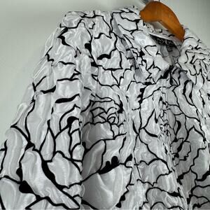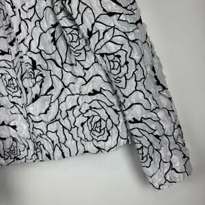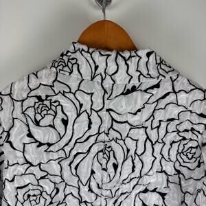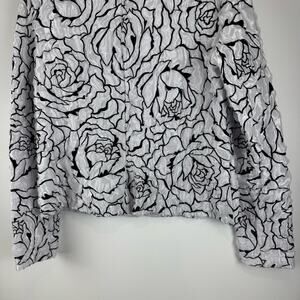 Elevate your style with the Women's Jacket, featuring a striking black and white floral design. Perfect for any occasion, this jacket combines elegance with comfort and is a wonderful light weight and silky soft.