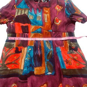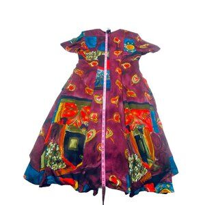 ALI CRUZ Women Abstract Print Midi Dress Sz 8 Short Sleeve Multicolor Boho 77-7