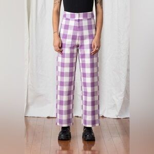 Tags / similar brands : gingham pants , plaid pants , gingham trousers , 60s style , Ali Golden , trousers , purple white pants , purple trousers , Jungmaven , Girls of Dust , Caron Callahan , 60s style trousers , hot pants