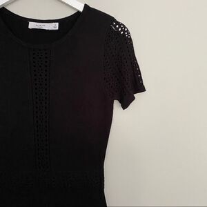 ALI & JAY knit dress in size small. Black color way. Open knit on sleeves and portion of the bodice. Excellent condition. No flaws to note. See measurements in pictures.