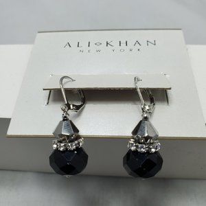 ALI KHAN imperial black silver French wire with rhinestone spacer earring