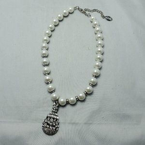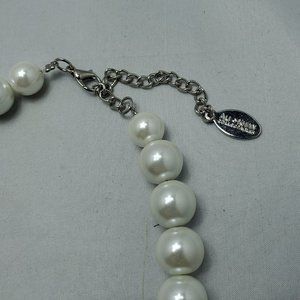 Pearls: The main part of the necklace is composed of large, spherical, lustrous pearls, likely faux pearls, in a creamy white or ivory color.