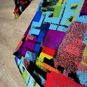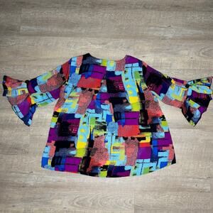 ALI MILES Abstract Artsy Bright Colorful Modern Geometric Ruffle Blouse Large