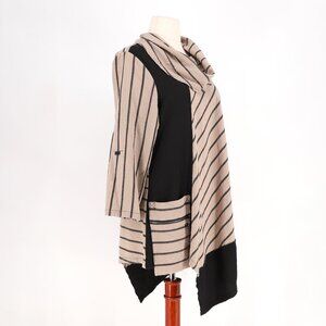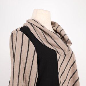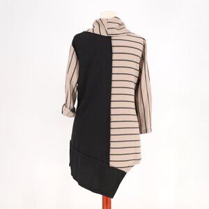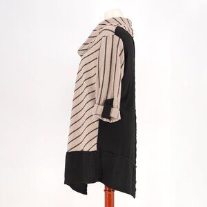 ALI MILES Asymmetrical Colorblock Cowl Neck Crinkle Tunic Taupe Black Size L
