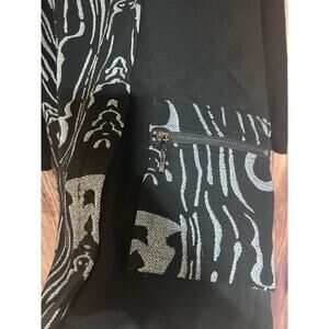 ALI MILES Black Artsy Abstract 3/4 Sleeve 3 Button Art To Wear Top SIZE XL