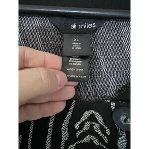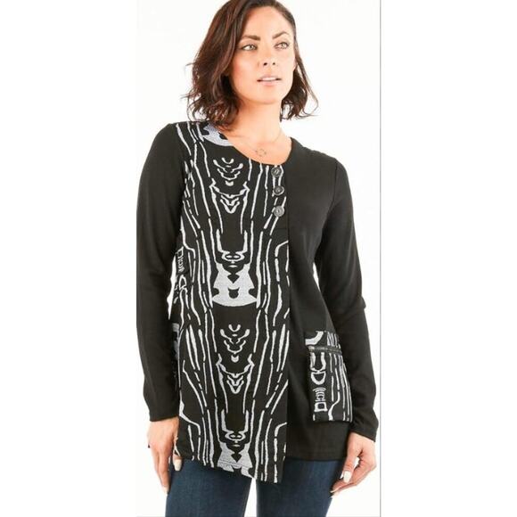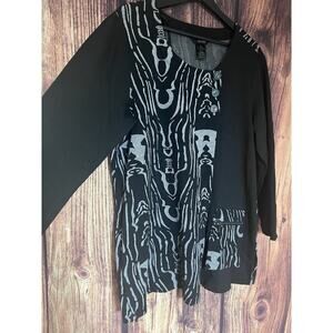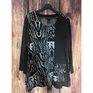 ALI MILES Black Artsy Abstract 3/4 Sleeve 3 Button Art To Wear Top SIZE XL