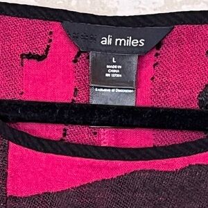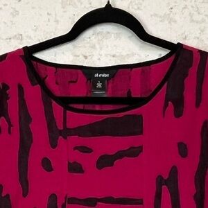ALI MILES Linen Blend Art To Wear Top Large Magenta Tunic Elevate your wardrobe with this gorgeous Ali Miles tunic top in a stunning dark pink and black color scheme.