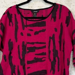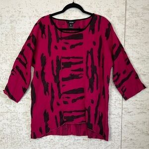 ALI MILES Linen Blend Art To Wear Top Large Magenta Black Abstract Print Tunic