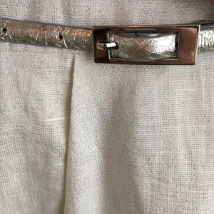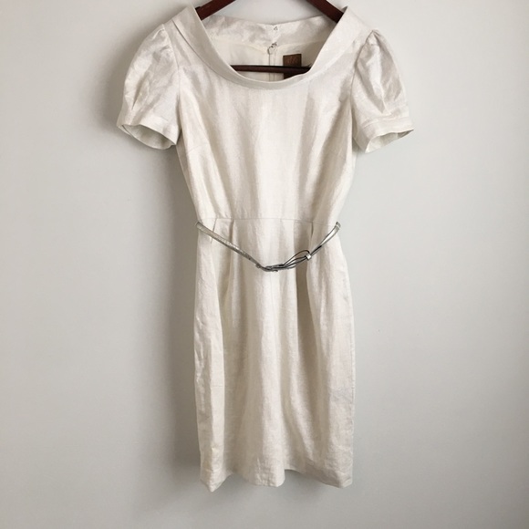 This stunning dress is perfect for your holiday party this season! This off white and silver threaded dress is free of any rips, stains, or imperfections. Silver snake print belt included.