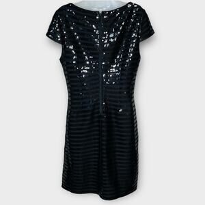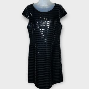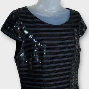 ALI RO black sequin stripe cap sleeve cocktail party dress size 10