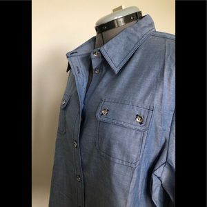 ALIA Petite Womens Denim Shirt Size 14P Option Turn Up Sleeves Breast Pockets