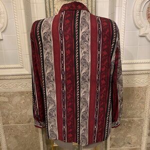 ALIA. Size 16. Rodeo Show Long Sleeve Shirt. Stripe. Button Up. Polyester. Center back 26.8". Sleeve 24". Bust 24/48". Very good pre-loved condition.