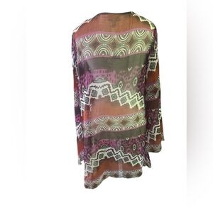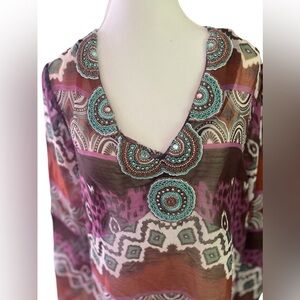 ALIA Women’s Sheer Beaded Blouse, Boho Chic Size XL