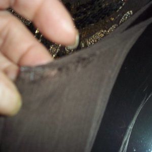 BEAUTIFUL DRESS, HAS A SLIGHT TEAR RIGHT ON THE SEAM EASY FIX, OTHER THAN THAT ITS IN GREAT CONDITION, HAS A SIDE ZIPPER, IS A SIZE SMALL
