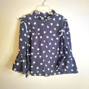 ALICE AND OLIVIA Henrietta Daisy Pattern Ruffled Cotton Boxy Blouse Sz M