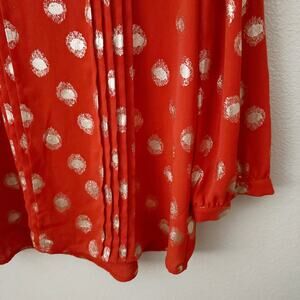 ALICE BLUE x STITCHFIX | Orange Pleated Gold Polka Dots Chiffon Blouse | Medium