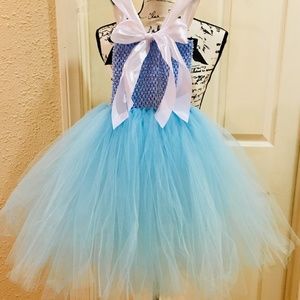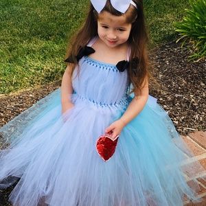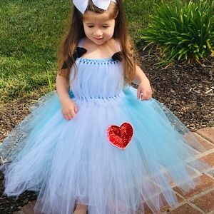 ALICE IN WONDERLAND couture tutu dress/costume - custom made couture, super cute hand-tied full and fluffy tutu dress with coordinating black satin ribbons and wide satin double bows. White tulle apron with red heart sequin pocket. *(available in ankle length) Additional sizes available at www.adinaballerina.com
