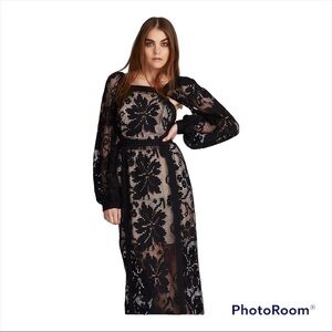 ALICE MCCALL Black Lace Long Sleeve Open Back Cutout You've Got the Love Midi Dress