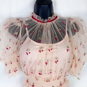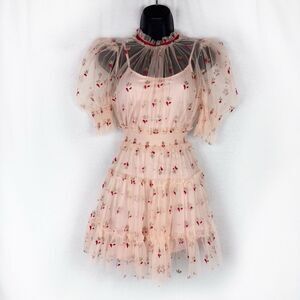 ALICE MCCALL Cowboy Tears Peach Orange Pink Tulle Ruffle Mini Dress US 0