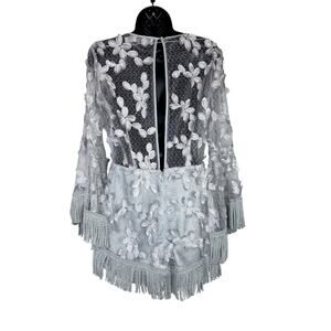 ALICE MCCALL Ziggy Star Silver Floral Lace Mesh Fringe Long Sleeve Romper US 6
