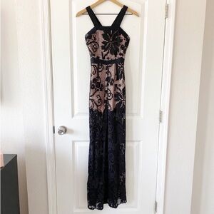 Alice McCall Billsberry black lace jumpsuit. Sheer legs with large side slits