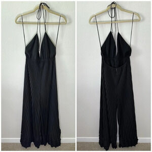 ALICE + OLIVIA Black Adalyn Halter Pleated Jumpsuit SZ US 12