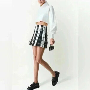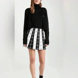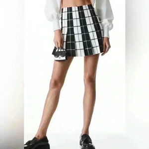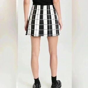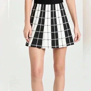ALICE + OLIVIA Carter Stitch Pleat Mini Skirt 2 Schwarz Black White Plaid $350