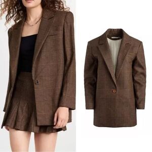 ALICE + OLIVIA Colley Check Houndstooth blazer in camel/black