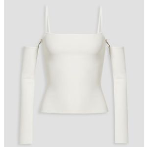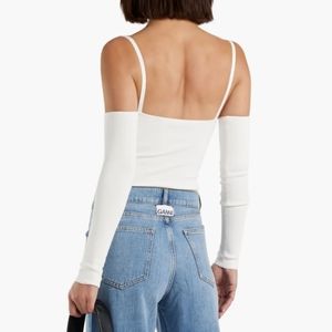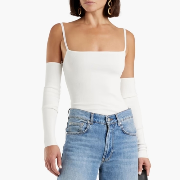 Brand new with tags Alice + Olivia white top. Ribbed jersey, convertible with detachable sleeves. Slips on. Stretchy mid weight fabric.