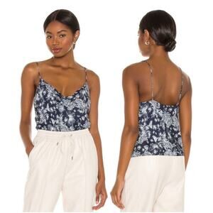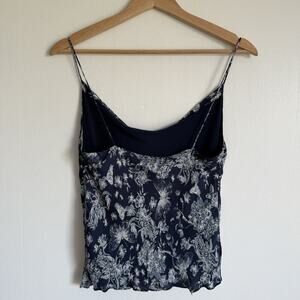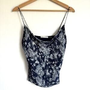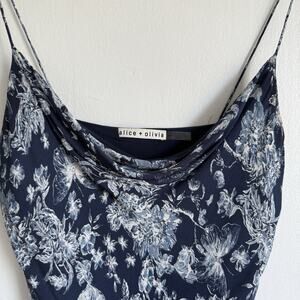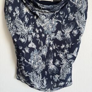 ALICE + OLIVIA Cowl Neck Cami Top XS Navy Toile Floral Butterfly Y2K Romantic