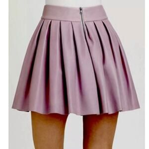 Structured box pleats sweeten this edgy, Alice + Olivia lamb skin leather box mini skirt, which falls gracefully to a raw hem. An exposed zip and hook-an-eye. fastens the back. This lavender high waisted 100% genuine leather skirt is super fashionable and trendy. Super chic and versatile. It’s pastel soft lavender color could easily matched up with any color in your wardrobe. Wear it with heels, sandals for summer and turn it into a fall basic by pairing it up with boots a sweater. Wear it with a blazer and a blouse to achieve a more sophisticated look.