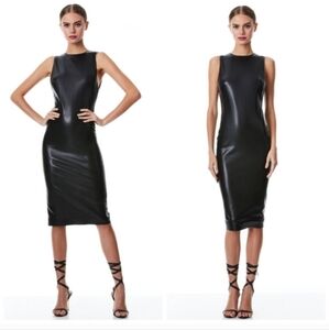 ALICE + OLIVIA DELORA VEGAN LEATHER SLEEVELESS MIDI DRESS SIZE 4