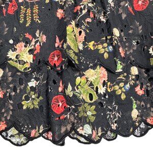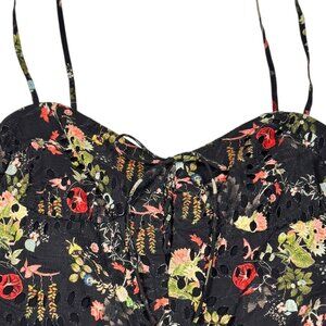 ALICE + OLIVIA Daisy Tiered Mini Dress Sz.10 Dark Floral Black Eyelet Tie-Front