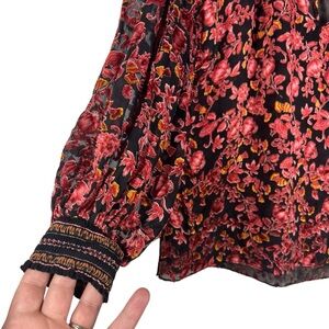 ALICE & OLIVIA Desiree Velvet Effect Blouse Textured Sheer Floral V-Neck