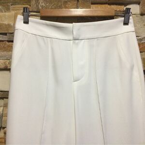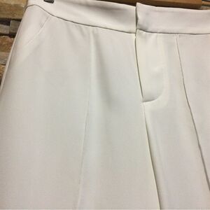 These elegant white pants are perfect for any occasion. 100% polyester. Wide Leg, High rise, Side slit pockets, Front pin tuck. Waist 14.5, Length 45.5 inches, Inseam 35.5 inches. Good condition.