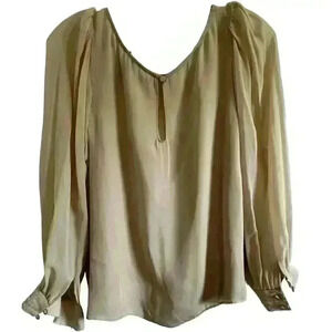 ALICE & OLIVIA EMPLOYED SILK BLOUSE SHEER SLEEVES Size Small
