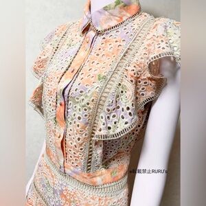 Alice + Olivia embroidered eyelet top jacket in the posy garden dusty orchard pattern
