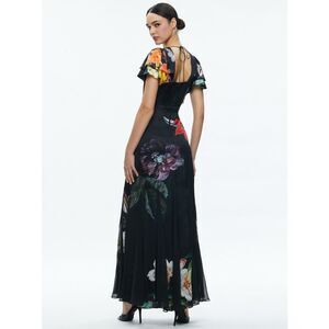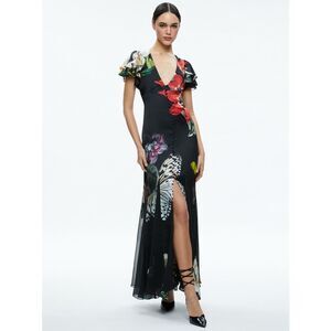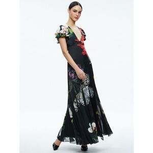 ALICE + OLIVIA FARA DEEP V-NECK FLUTTER SLEEVE MAXI DRESS SIZE 2 $695
