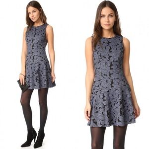 ALICE + OLIVIA FONDA SLEEVELESS DROP WAIST DENIM FLORAL APPLIQUE MINI DRESS