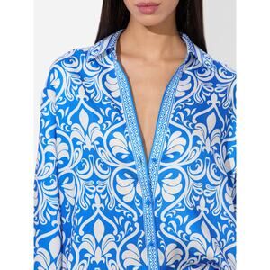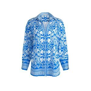 Elevated lounge meets everyday glam. The Kiva Oversized Pajama Shirt from Alice + Olivia transforms the idea of sleepwear with its luxurious printed silky twill fabric, fluid drape, and dramatic oversized fit. Whether you’re brunch-bound or lounging at home, this shirt offers versatility and statement-making style.