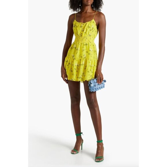 ALICE + OLIVIA Lai Printed Silk Blend Mini Dress Yellow Womens Size 10