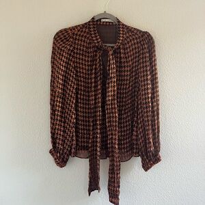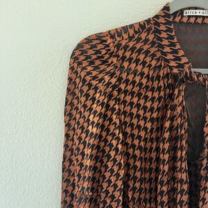 ALICE & OLIVIA | Lolita Houndstooth Devoré Semi-Sheer Chiffon Blouse | Size S