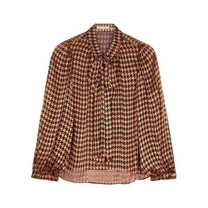 Alice + Olivia black semi-sheer chiffon blouse Rust houndstooth devoré, tie-fastening neck, elasticated cuffs, curved hem Slips on Fabric1: 56% viscose, 44% silk; fabric2: 94% polyester, 6% elastane Dry clean