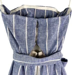 ALICE + OLIVIA Lucie Linen Blend Striped Strapless Wide-Leg Jumpsuit 0