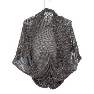 This medium gray cotton shrug features delicate bead and sequin detailing along with a unique crochet design and flattering ruching.