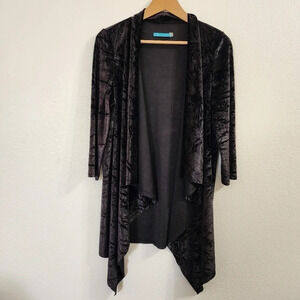 ALICE + OLIVIA Mariona Velvet Drape Front Cardigan Black Size M