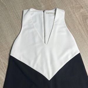 ALICE & OLIVIA Maya Colorblock Racerback Black White Deep V Sleeveless Dress