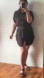 Details: Alice + Olivia brown, knee-length, short-sleeve, minimalist shirt dress with collared neck, buttons down the front, side seam pockets, detachable belt that ties at the waist and tabs that gather the sleeves and the hem (at the side seams) that give the dress a cool geometric structural shape if worn up. The fabric is airy and light, utility/working vibe.
